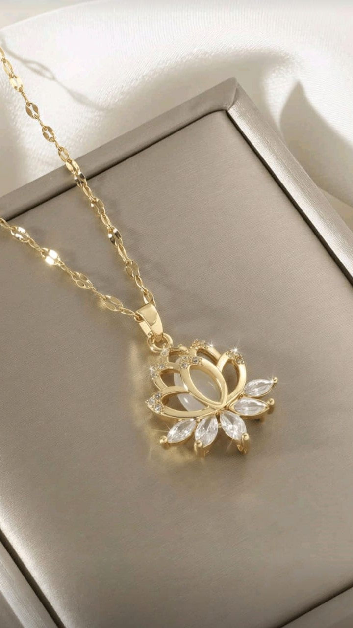 Diseño Exquisito: El colgante presenta una flor de loto delicadamente un brillo cálido y duradero.