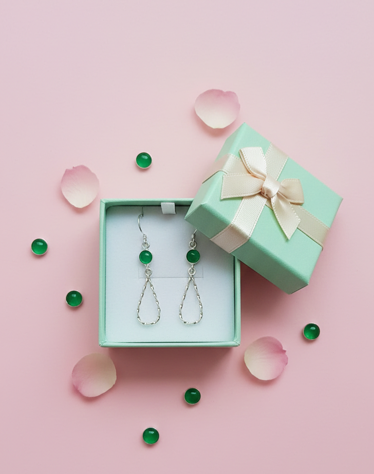 Descubre el equilibrio perfecto entre la naturaleza y el diseño contemporáneo. Estos pendientes han sido creados para resaltar tu luz propia con un toque de color vibrante y una silueta elegante.